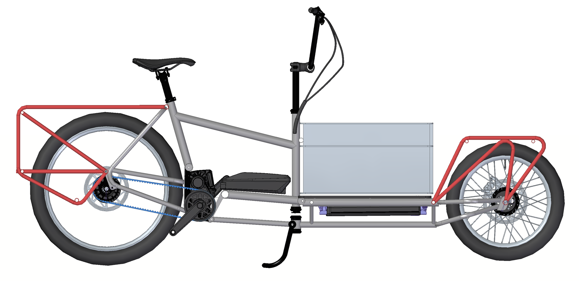 With 20-inch front and 26-inch wheels back. Asteroid Work uses the 20inch front frame platform from the Family model and the rear 26inch wheel frame from the Adventure model. This 20-26 wheel combination is the format that commercial couriers prefer for all day riding comfort.